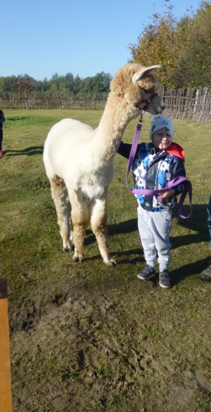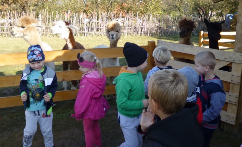 14 października korzystając z pięknej pogody grupy II i IV pojechały do Międzyrzecza zobaczyć hodowlę zwierząt Alpaquero. Dzieci dowiedziały się co to są alpaki, jak się odżywiają, gdzie mieszkają i jakie korzyści przynoszą ludziom. Każde dziecko mogło karmić te sympatyczne zwierzaki, poprowadzić na spacer, pogłaskać. Dzieci otrzymały gipsowa figurkę alpaka, którą pomalowało według własnego pomysłu. Wycieczka dostarczyła wszystkim wielu nowych wrażeń.